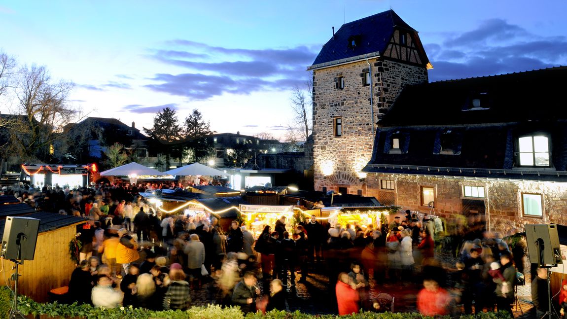 Jedes Jahr am dritten Adventswochenende bietet die historische Wasserburg mit ihrem romantischen Ambiente, den idealen Rahmen für den Bad Vilbeler Weihnachtsmarkt.