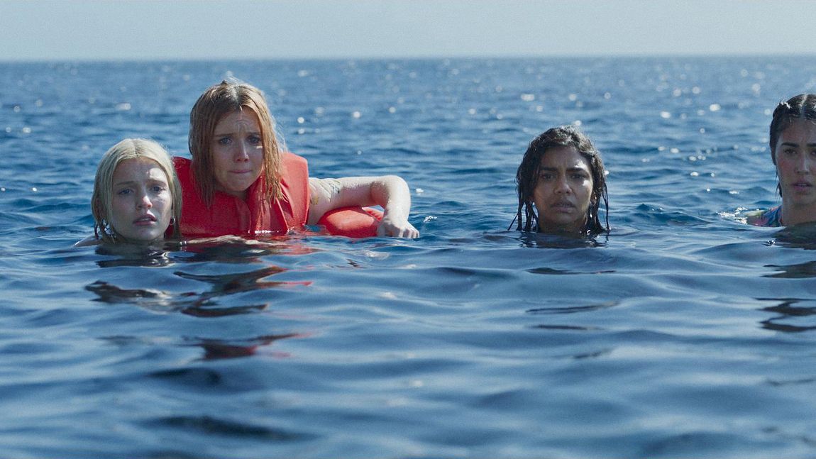 ...Als spontan die Idee aufkommt, am Vortag der Hochzeit mit dem Boot zu einem Mädels-Trip auf eine einsame Insel aufzubrechen, ahnen sie nicht, was sie erwartet ...kurz nach der Ankunft im Paradies wird Ruth beim Schwimmen von einem Hai angegriffen – panisch versuchen die Freundinnen, die Verletzte zurück ans Festland zu bringen ...nur, um kurze Zeit später festzustellen, dass das gemietete Boot ein Leck hat – mitten auf dem Ozean, ohne Land in Sicht! Blut sickert ins Wasser und die Bahnen der sie umkreisenden Haie werden immer enger: Ein Nerven zerfetzender Wettlauf gegen die Zeit beginnt…
