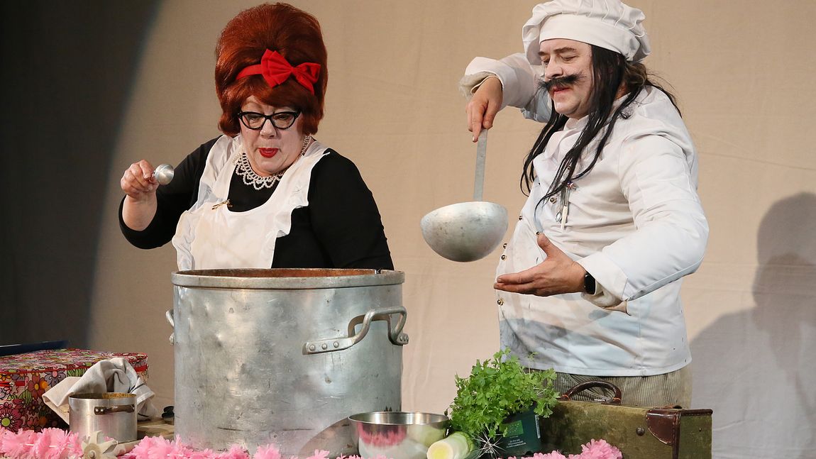 Die etwas andere Dinner Show – skurril, komisch und hoch explosivDer Geruch von Schwarzpulver liegt in der Luft. Der große Kochtopf faucht leise. Zwei 3 Sterne-Köche liegen sich glücklich in den Armen. Endlich! Nach 50 Jahren erbarmungsloser Forschungsarbeit ist es vollbracht!