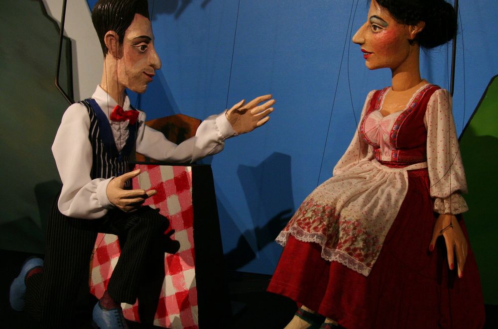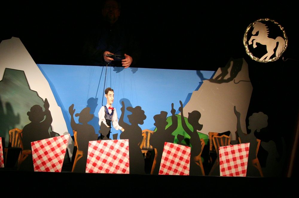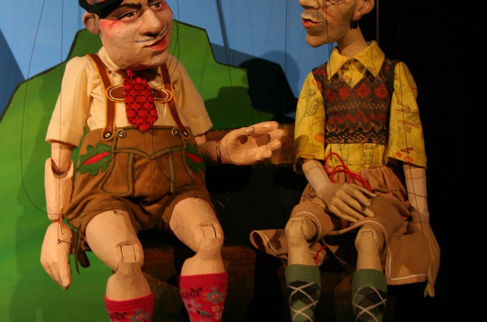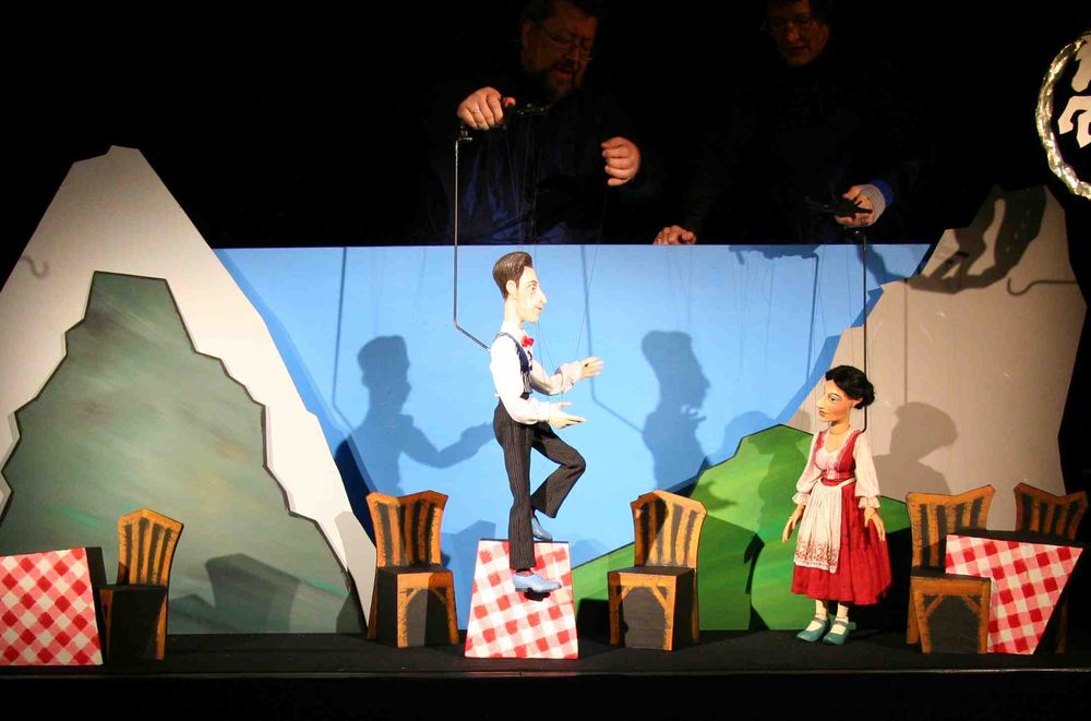 Es ist ein schräges Wiedersehen, das das kabarettistische Flair der 20er-Jahre wieder aufgreift. Der bekanntesten Operette von Ralph Benatzky (1884 – 1957) rückt das Kobalt Figurentheater aus Lübeck mit zwei Spielern, zehn singenden Marionetten, mit Kuhstall, Blitz und Donner augenzwinkernd zu Leibe.