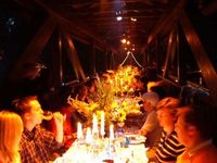 Die Holzbrücke zwischen Burg und Alter Mühle wird an diesem Abend zu Bad Vilbels ungewöhnlichster Tafel: